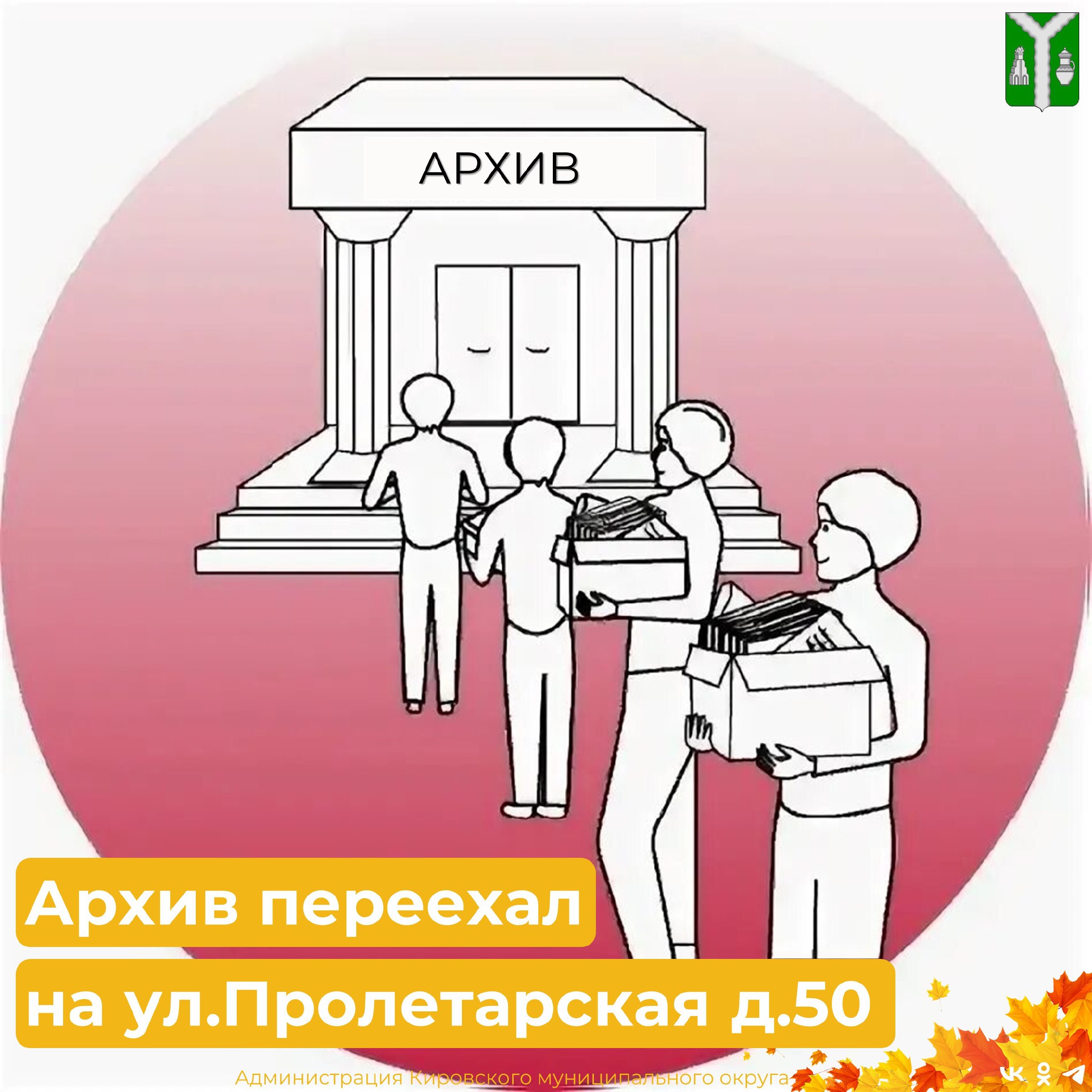 Уважаемые кировчане! Сообщаем, что архивный отдел теперь находится по адресу: ул.Пролетарская, 50 (вход со стороны МКЦ).
