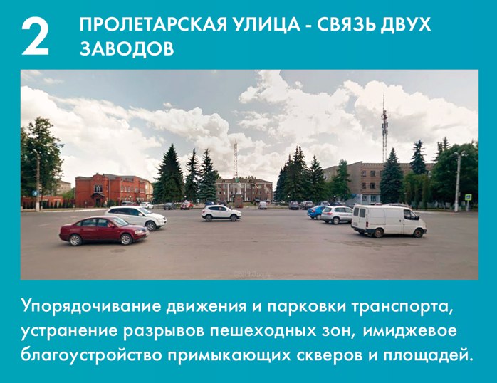 Упорядочивание движения и парковки транспорта, устранение разрывов пешеходных зон, имиджевое благоустройство примыкающих скверов и площадей.