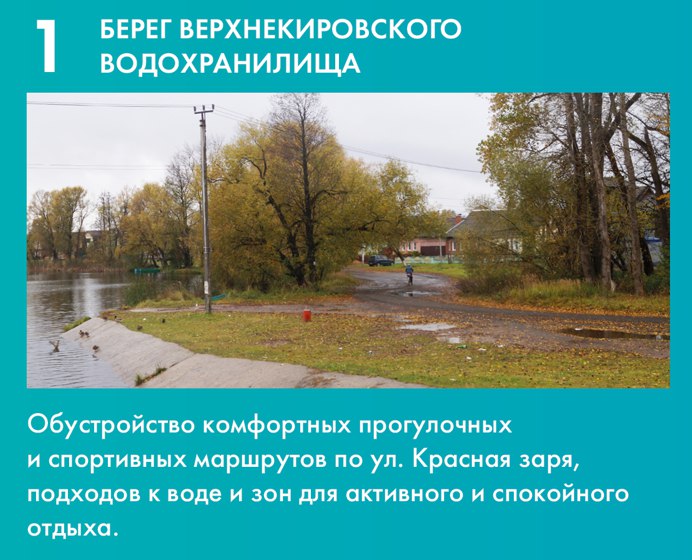 Обустройство комфортных прогулочных и спортивных маршрутов по ул. Красная заря, подходов к воде и зон для активного и спокойного отдыха.