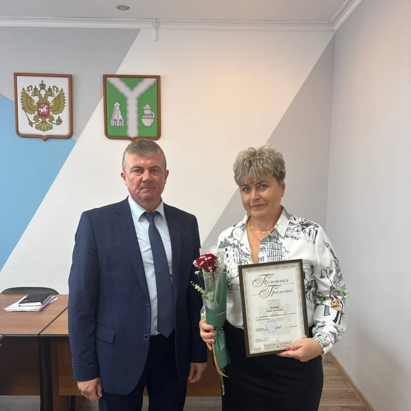 Игорь Феденков вручил почётную грамоту Губернатора Калужской области за многолетний добросовестный труд и высокий профессионализм Якушевой Елене Сергеевне - главному специалисту управления финансов.